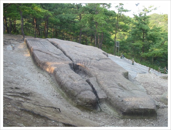 나침반을 갖다대면 거의 정확히 남북으로 향하고 있다. 또한 와불의 아래에 있는 시위불도 와불 옆에서 떼어내 세운 것이다.