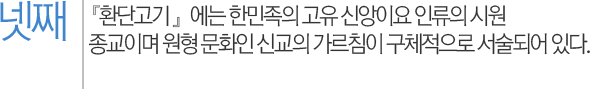 사람은 세상을 살면서‘ 신은 정말 존재하는가? 인간이란 무엇인가? 인간은 왜 사는가?’라는 의문을 가질 때가 있다. 그에 대한 답을『 환단고기』는 신교의 신관, 인간관, 우주관, 역사관에 근거하여 종합적으로 정리해 준다. 따라서『 환단고기』는 신과 기, 신과 천지인, 천지와 인간 사이의 관계, 인간의 탄생 원리 같은 심오한 진리 주제를 망라하여 싣고 있는 철학 경전이요 문화 경전이라 하겠다.